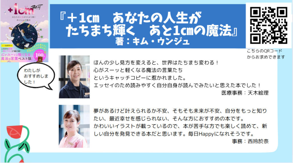 これまでのおすすめ本も、待合室のモニターの下の本棚に置いてあります。
