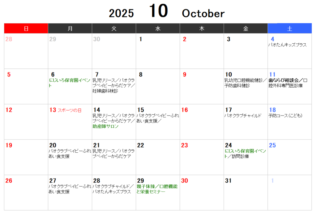 さわやかな風と青い空が広がり、お出かけしたくなる季節。お出かけスケジュールの中に、「I Dental Clinic」も入れておいてください。一般診療以外に、親子で参加できる教室や健康・予防に関する教室もあります。詳しくはお気軽にお問合せください。