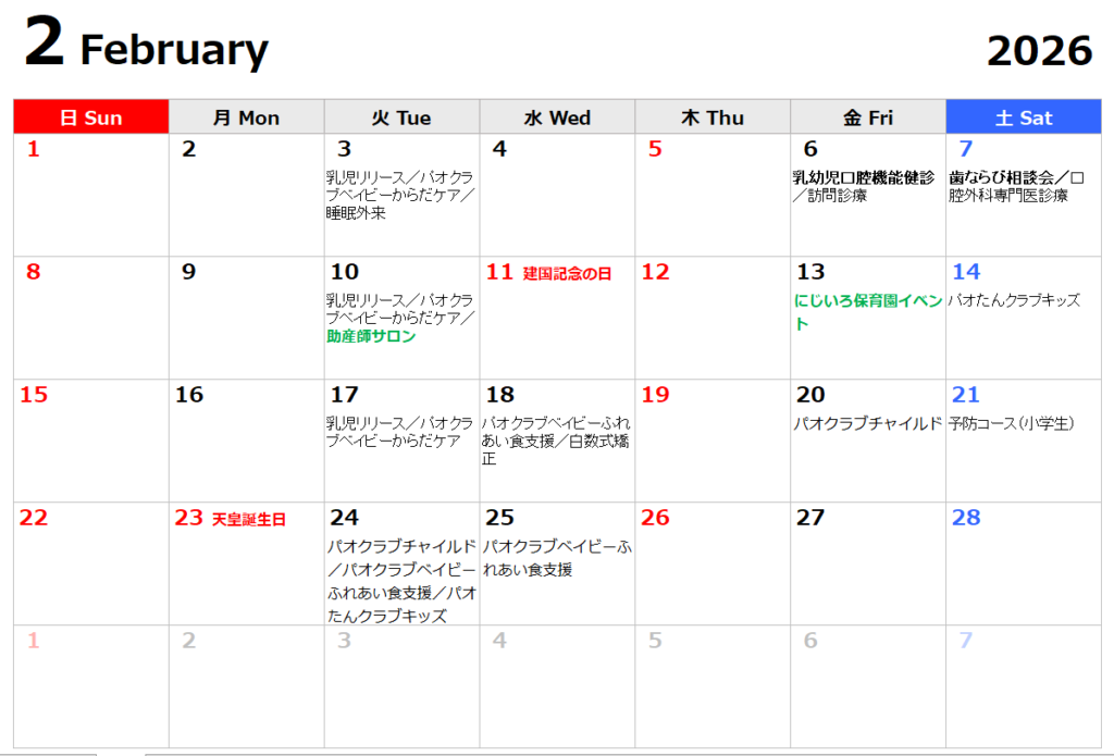 2月の診療カレンダー