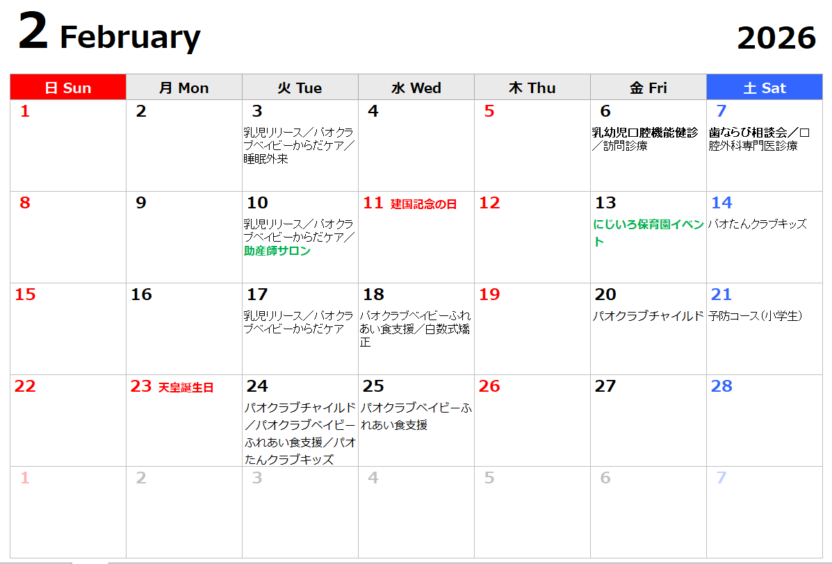 2月の診療カレンダー